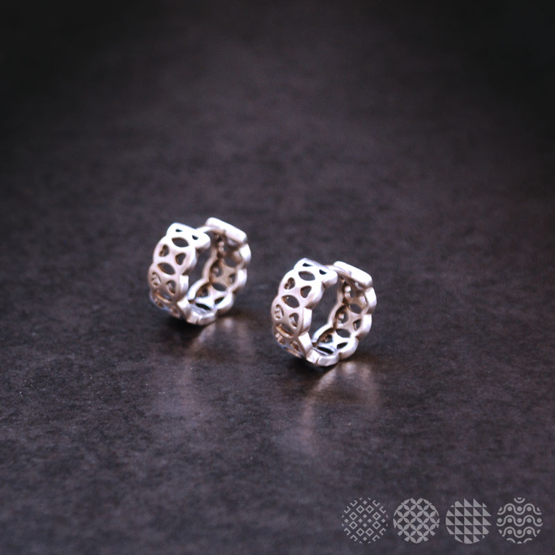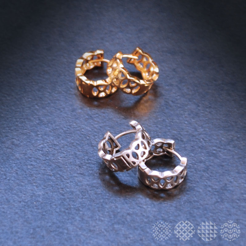 Μικροί κρίκοι, με γεωμετρικό μοτίβο για όλες τις ώρες της ημέρας. Διαθέτουν κούμπωμα από τιτάνιο για να μην προκαλούν αλλεργίες.
